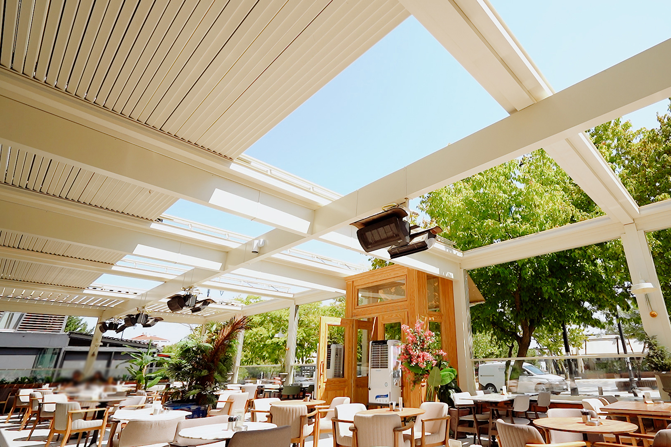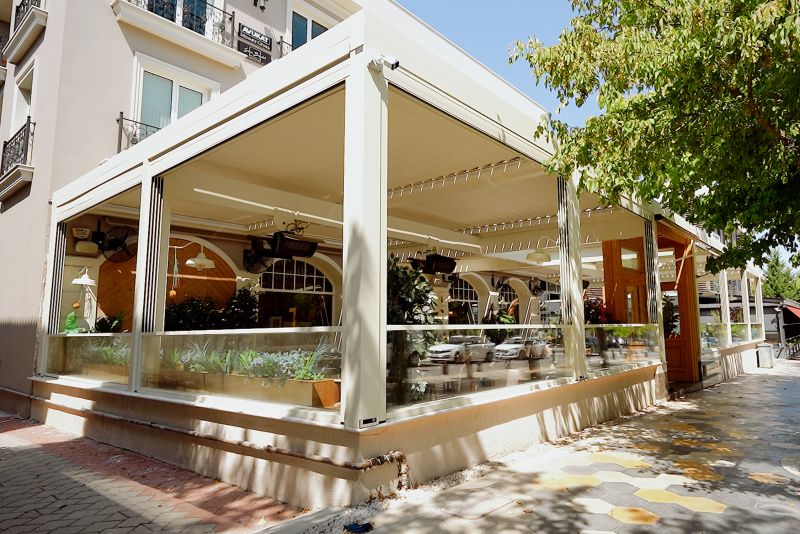 UYGULANAN ÜRÜNLER: BİOKLİMATİK PERGOLA (ROLLİNG ROOF) - GİYOTİN CAM - WİNTENT