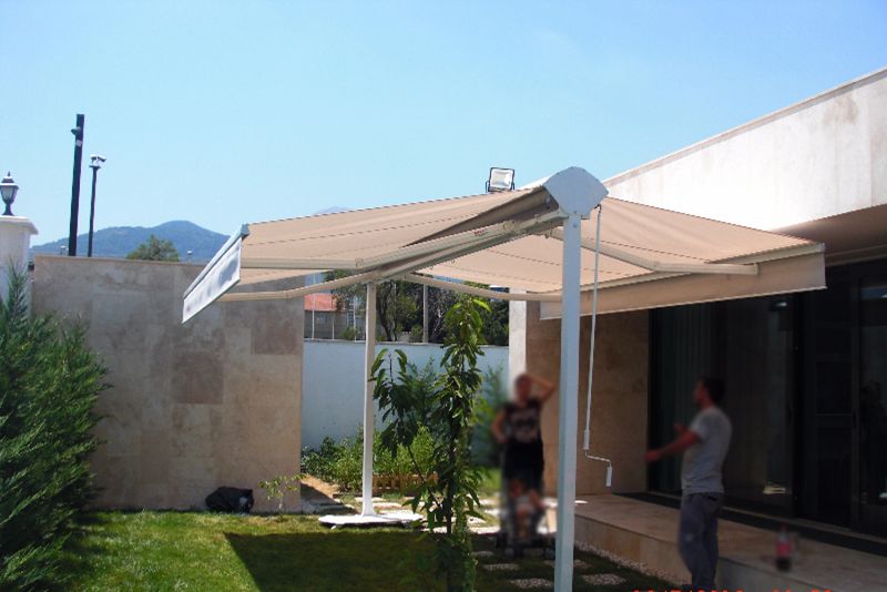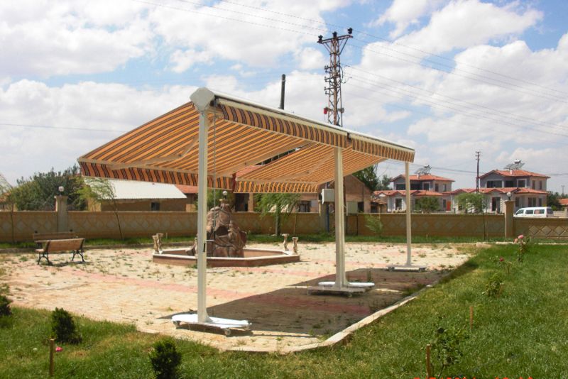 ÜRÜN AÇIKLAMASI: Gölgenin isteğe bağlı olarak hem sabitlenmesine hem de taşınabilmesine olanak veren estetik ve zarafetin bir araya geldiği çift yöne açılımlı tente modelidir. Bu modelde tenteler ister aynı anda iki yöne sağa ve sola olmak üzere açılabilir yada bir tente kapalıyken diğerinin açık kalması sağlanarak tente kullanım alanının isteğe bağlı olarak belirlenmesi sağlanabilir.